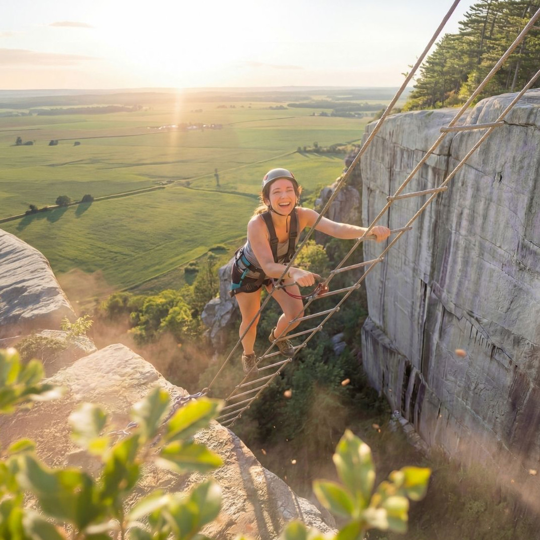 Une nouvelle activité unique en Ardenne à Adventure Valley Durbuy. Défiez le vide barreau après barreau jusqu’au sommet du Rocher et profitez d’une vue spectaculaire.