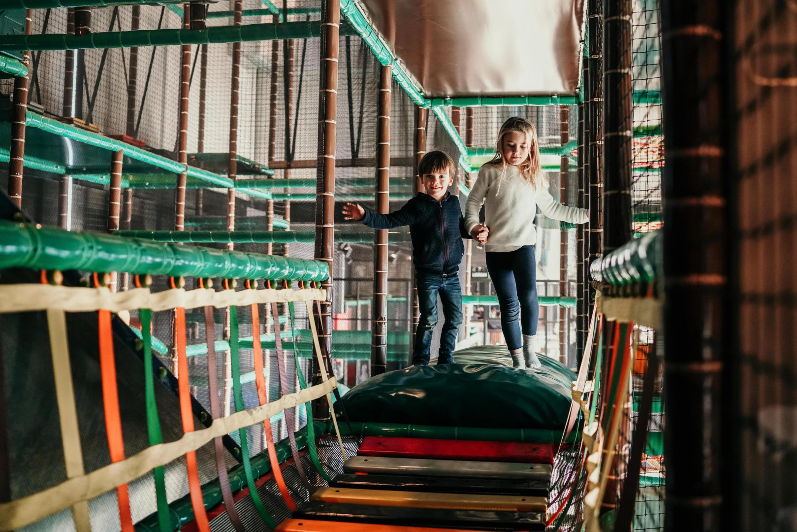 Nichée au cœur des Ardennes, la Kidzone est un espace de jeux couvert entièrement dédié aux enfants de 2 à 10 ans. Conçue pour leur permettre de bouger, grimper, ramper et s’amuser en toute sécurité, elle offre des heures d’aventure, quelle que soit la météo.