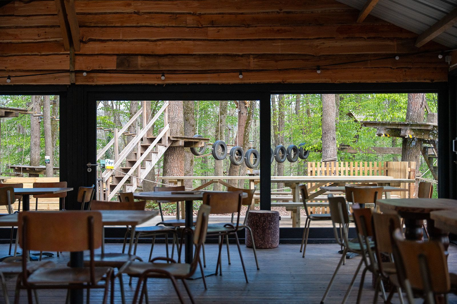 Drinks, snacks, picnic area and a view of the action: recharge without leaving the adventure.